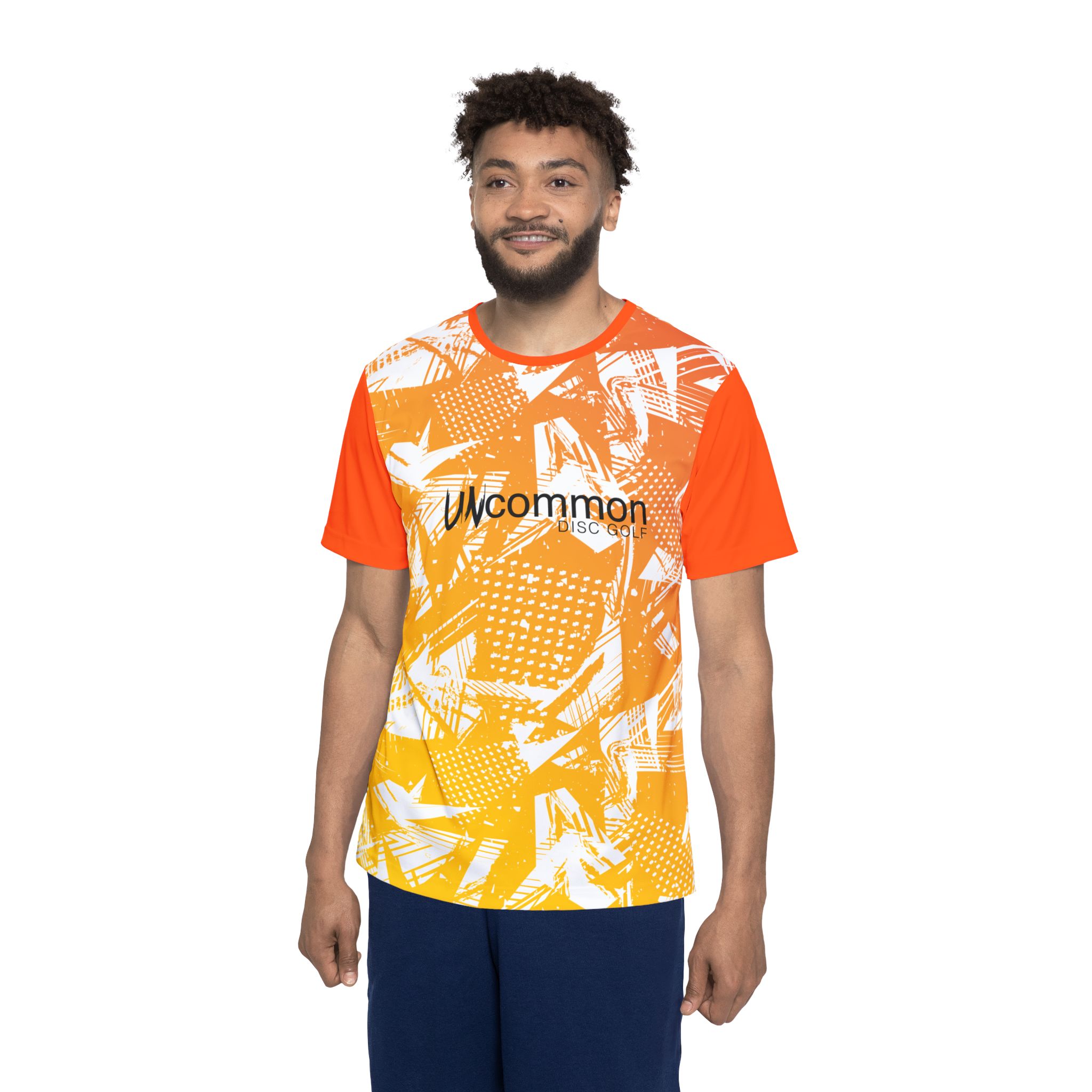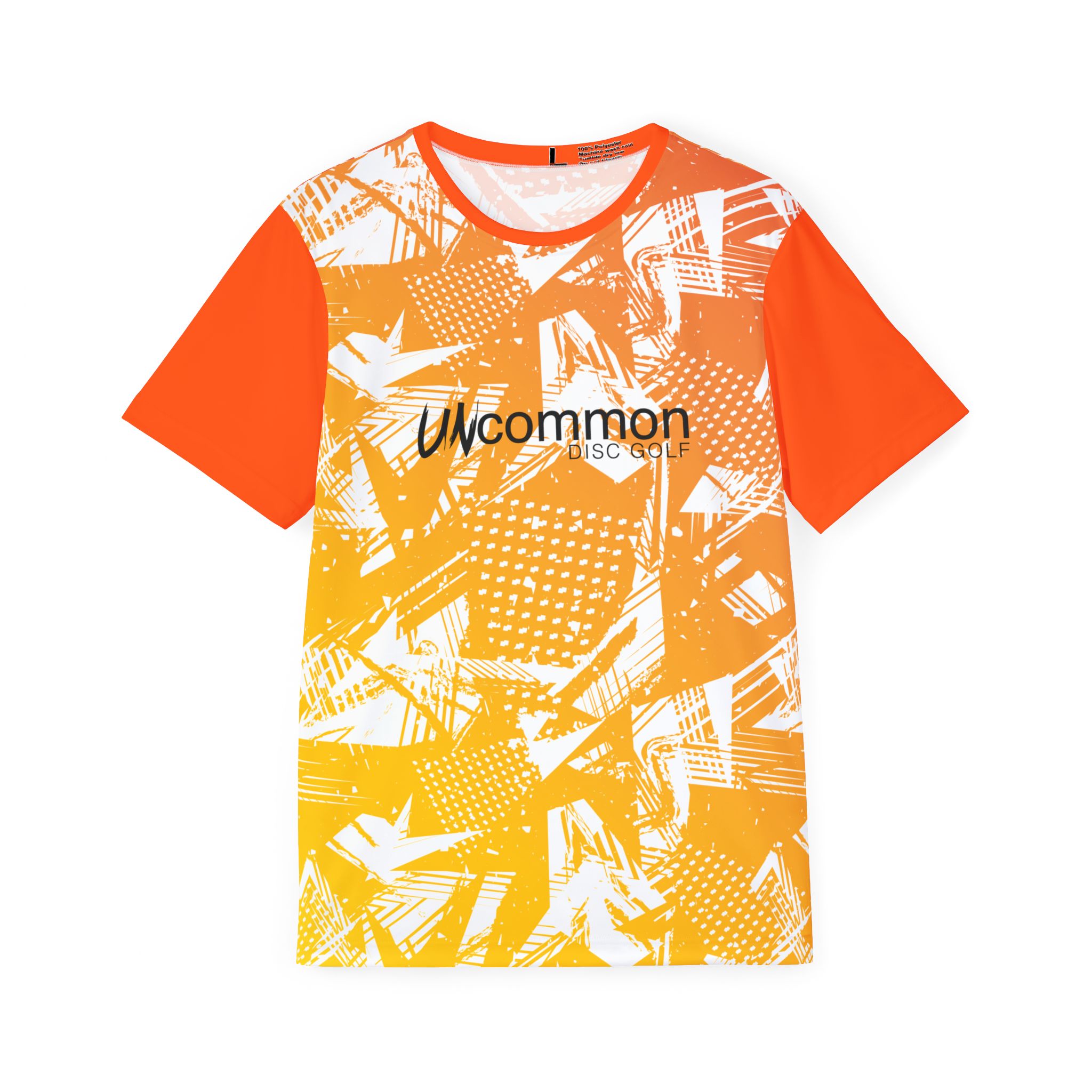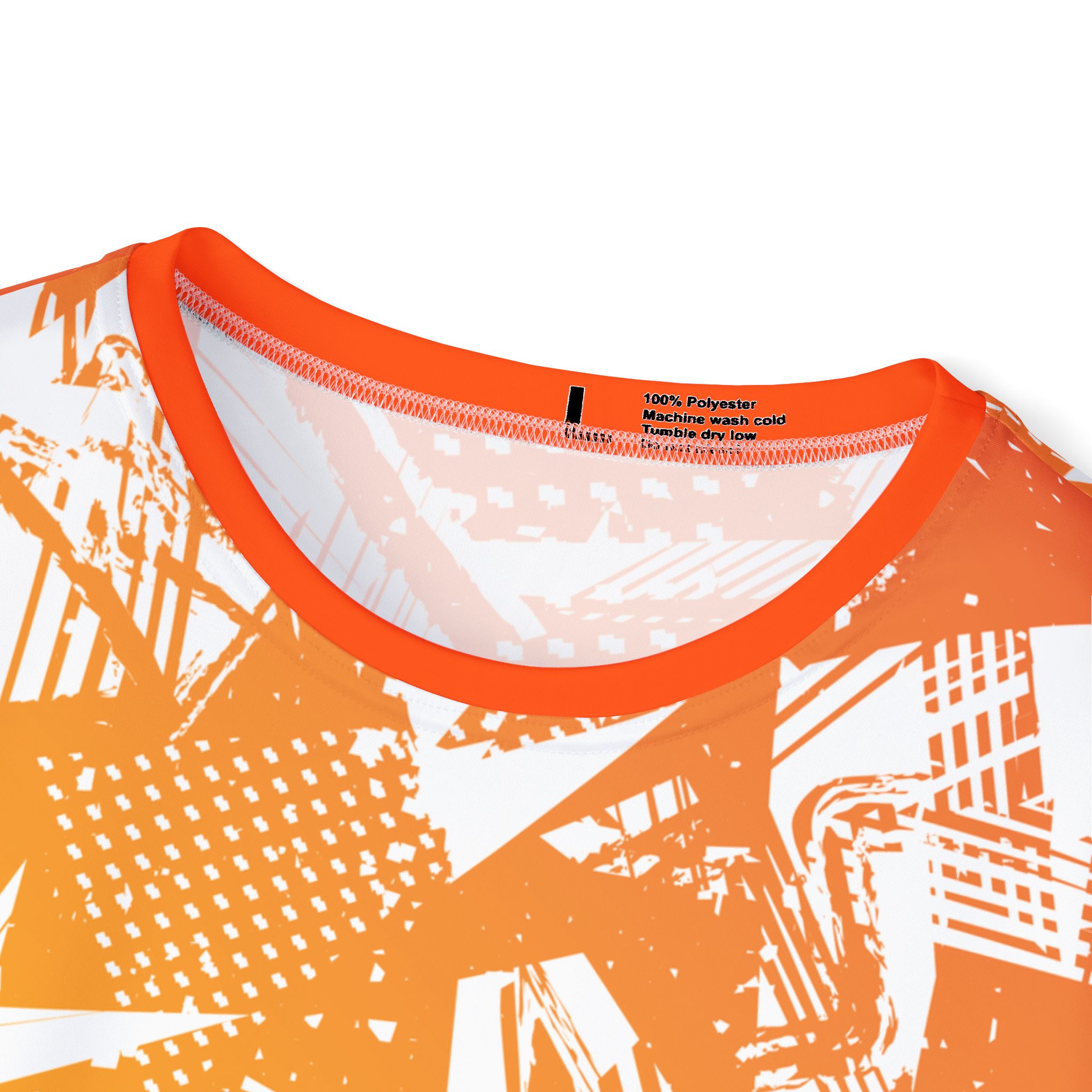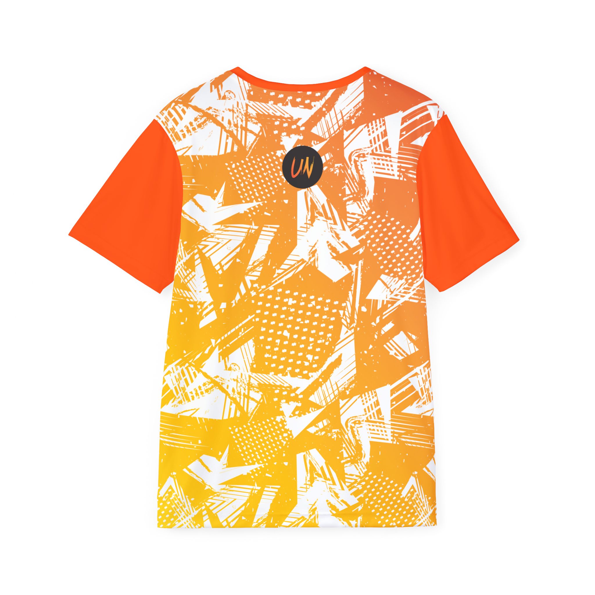 This lightweight sports jersey brings energy to every practice and pickup game. The bright orange-to-yellow abstract print reads loud while breathable, moisture-wicking polyester keeps you cool and dry when the tempo picks up. A 1×1 ribbed collar and armholes move with you and spring back for a clean, athletic fit. The classic cut sits comfortably through the shoulders and torso — easy to layer under warmups or wear solo during drills. Small branded details on the chest and a circular logo at the upper back add team-ready identity without getting in the way of movement. Made with vivid all-over printing and an extra-light fabric that dries fast, it’s built for players who want bold color and performance in equal measure.